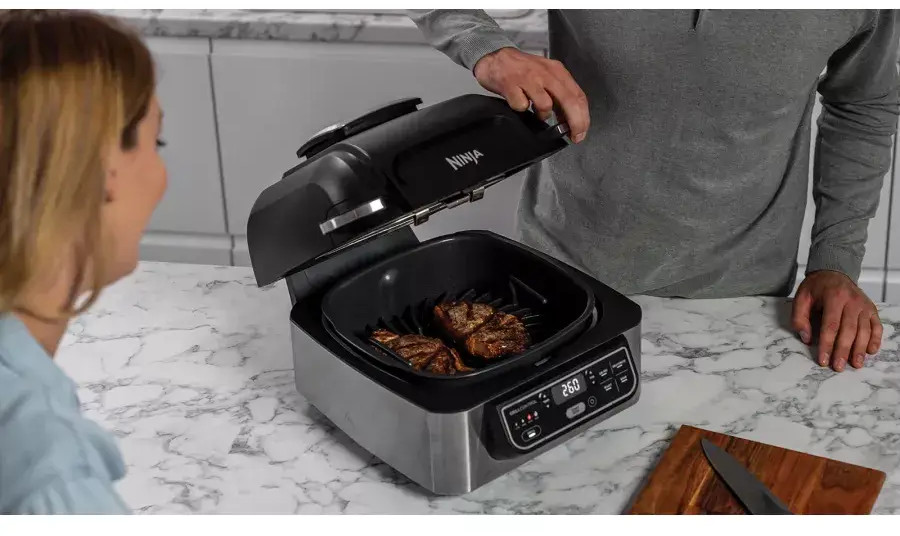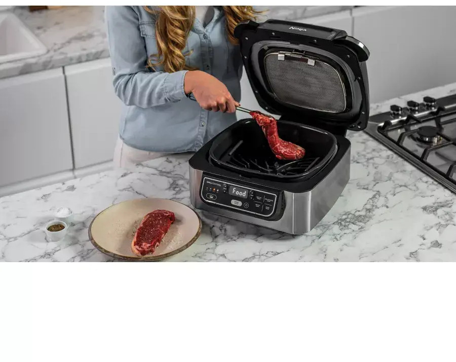 Встречайте новую эру кулинарных возможностей с грилем Ninja AG301, который сочетает в себе стильный дизайн, высокую производительность и уникальную функциональность. Незаменимый помощник в приготовлении блюд, начиная с сочных стейков и заканчивая хрустящими закусками. Благодаря комбинации современных технологий и продуманного исполнения, этот гриль станет ключевым элементом любой кухни. Гриль AG301 предлагает пользователям полный контроль над процессом приготовления благодаря точной регулировке температуры от 40°C до 265°C. Это значительно расширяет возможности, позволяя готовить как традиционные блюда-гриль, так и экспериментировать с новыми рецептами. Умные функции и встроенный термощуп гарантируют, что каждое блюдо будет идеально приготовленным, будь то мягкий омлет или прожаренный стейк.