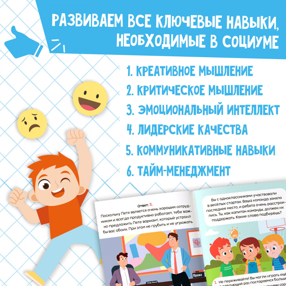 💳 Оплатить за товар можно при получении 🇰🇿 Есть бесплатная доставка по Казахстану 🎁 Копите бонусы с каждой покупки Набор книг Soft Skills «Развитие навыков в задачках и играх». Цель этой серии помочь ребёнку освоить навыки, которые необходимы для успешной жизни в социуме, развить лидерские качества, научиться мыслить нестандартно и ярко выделяться! |