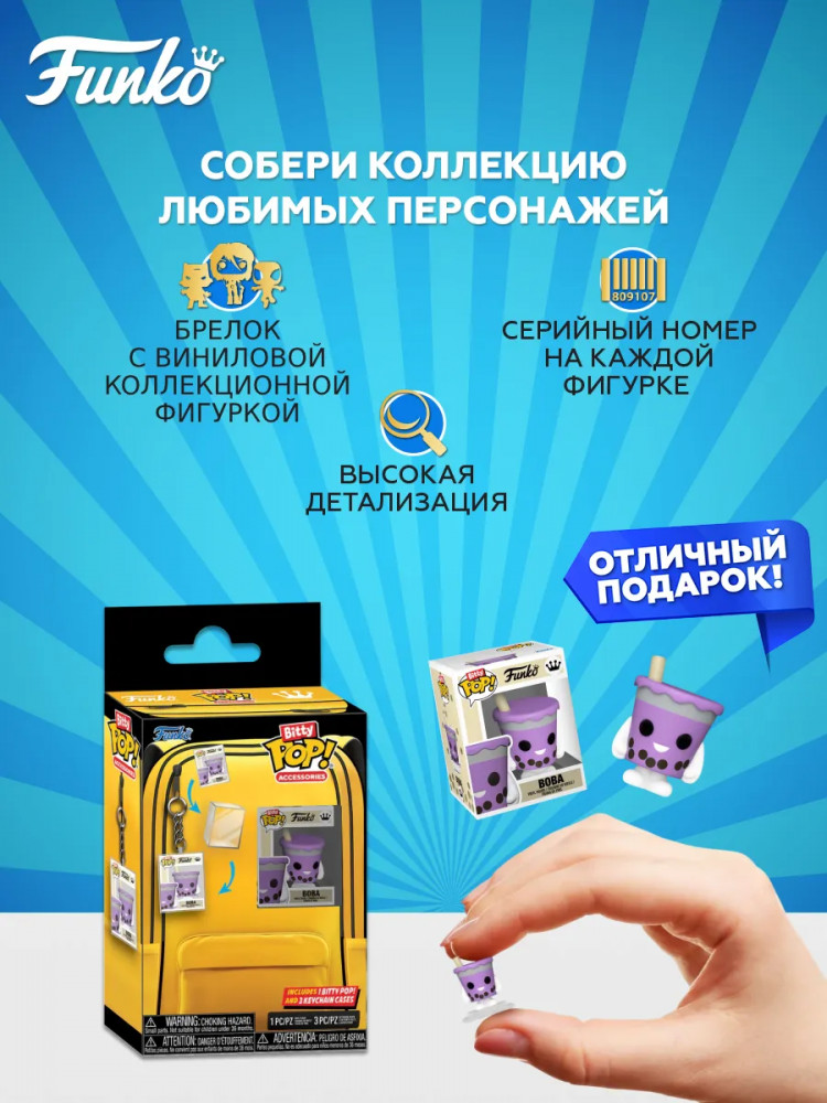 💳 Оплатить за товар можно при получении 🇰🇿 Есть бесплатная доставка по Казахстану от 1 дня 🎁 Копите бонусы с каждой покупки Серия: Bitty Pop! Набор подарочный Funko Bitty POP! Accessories: 1 фигурка Bitty POP! + 3 акриловых футляра-значка. Теперь вы можете добавить немного стиля Bitty POP!! с помощью набора Bitty POP! Accessories. Этот эксклюзивный набор включает в себя 1 фигурку Bitty POP! и 3 акриловых футляра-значка Bitty POP!. Каждый футляр-значок вмещает по одной фигурке Bitty POP!. Возьмите свою коллекцию с собой, прикрепив значки к любимому наряду или аксессуару. Смешивайте и сочетайте свои коллекционные предметы для большего удовольствия от ношения! Фигурка Bitty POP! упакована в жесткий акриловый футляр со съемной нижней крышкой. Съемная нижняя крышка также служит акриловой основой, к которой приклеивается фигурка Bitty POP!. Акриловые футляры-значки подходят для всех стандартных фигурок Bitty POP!. |