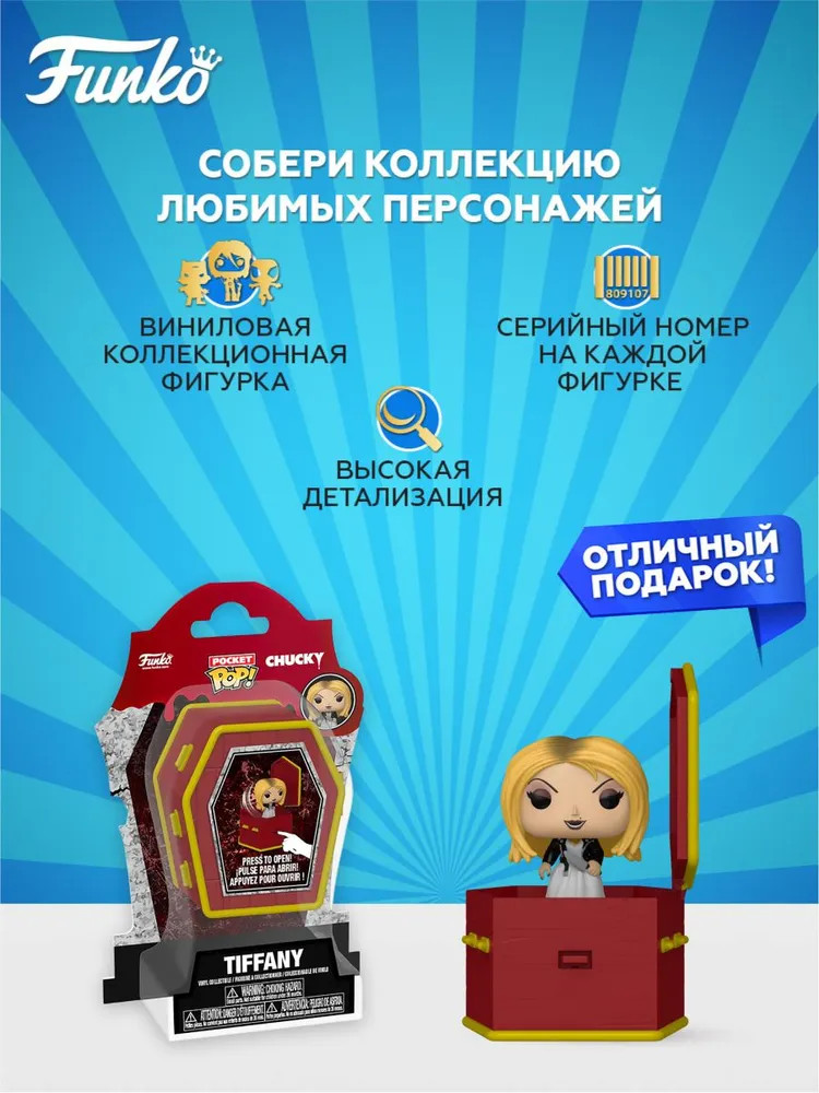 Funko Pop! Фигурка «Tiffany»В данный момент этот товар отсутствует в продаже. Возможно, у нас найдется аналогичный или похожий товар здесь. Серия: Chucky Фигурка Funko Pocket POP! Coffin Chucky Tiffany 87798 по мотивам франшизы «Чаки». Откройте ужасно веселый сюрприз с Funko Pocket POP! Скрытая в очаровательной хлопушке в форме гроба, фигурка Pocket POP! готова появиться по нажатию кнопки! Расширьте свою коллекцию, сделав эту хлопушку следующим дополнением к вашей линейке «Чаки». Размеры шкатулки 5.3×6.1×3.6 см. Высота фигурки: 3.8 см. Шкатулка открывается нажатием на кнопку. |