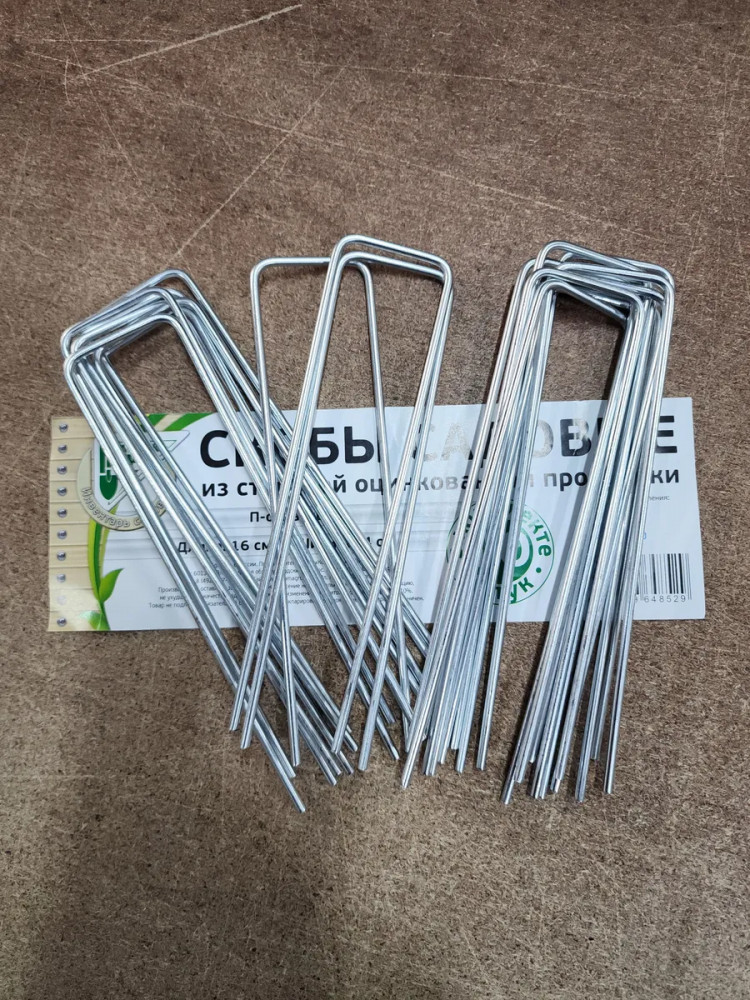 Садовые металлические скобы для геотекстиля — идеальные помощники для вашей дачи, сада и огорода. Скобы для крепления надежно фиксируют различные укрывные материалы, включая геотекстиль, спанбонд, садовые мембраны, различные виды пленок и сеток, а также мульчирующие и агроткани. Диаметр 3 мм. |