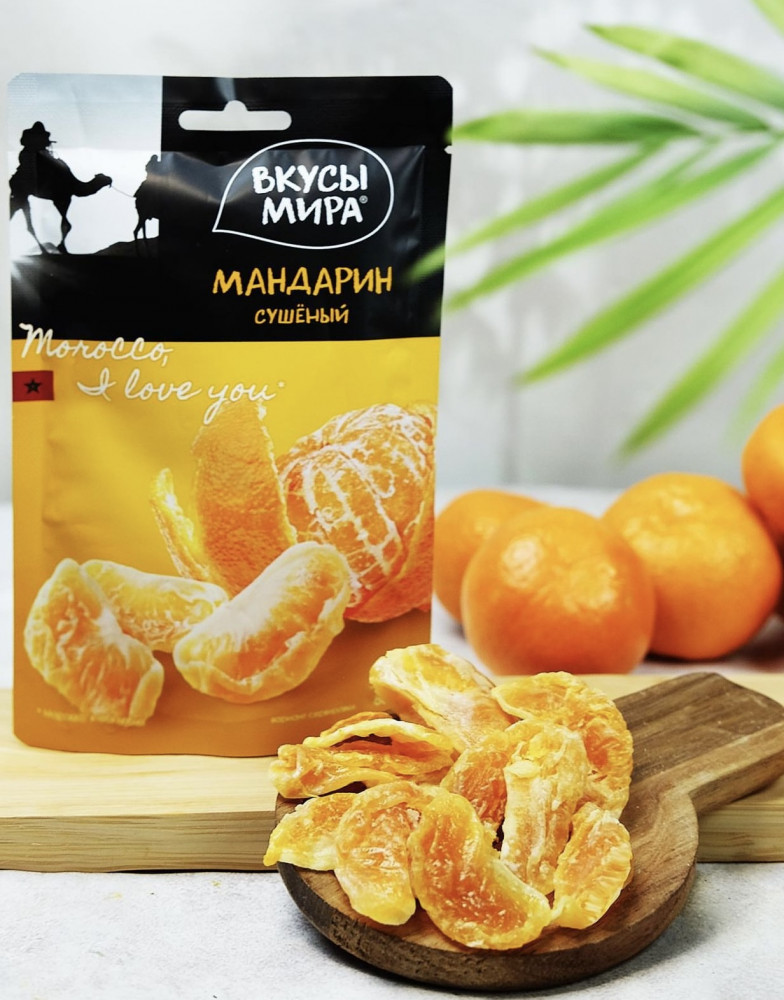 как мандариновые цукаты,но без сахара. Целые дольки,и вкусно и эстетически красиво!