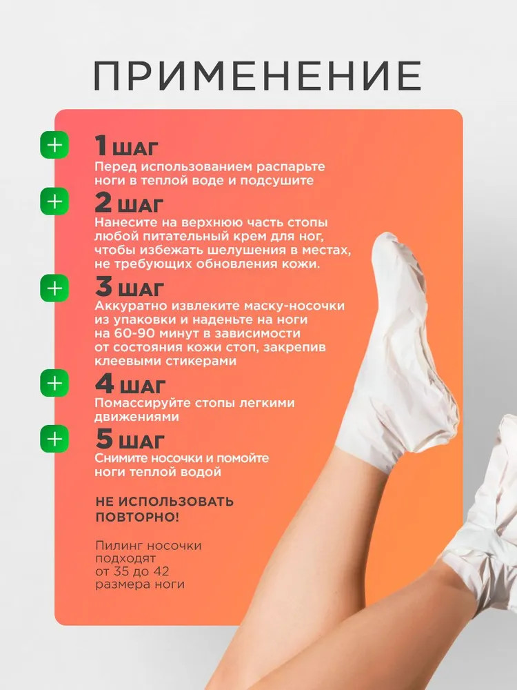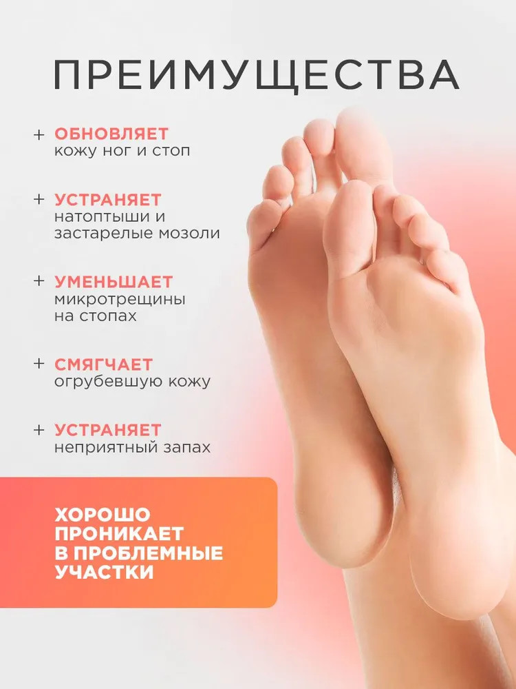 💳 Оплатить за товар можно при получении 🇰🇿 Есть бесплатная доставка по Казахстану 🎁 Копите бонусы с каждой покупки Серия: Professional Маска для стоп и пяток в формате пилинг носочков — эффективное средство для отшелушивания кожи. Активные компоненты глубоко очищают и способствуют обновлению эпидермиса, сокращают мозоли и натоптыши, смягчают огрубевшие участки. В результате применения ленивого педикюра кожа ног становится гладкой, мягкой и эластичной. |