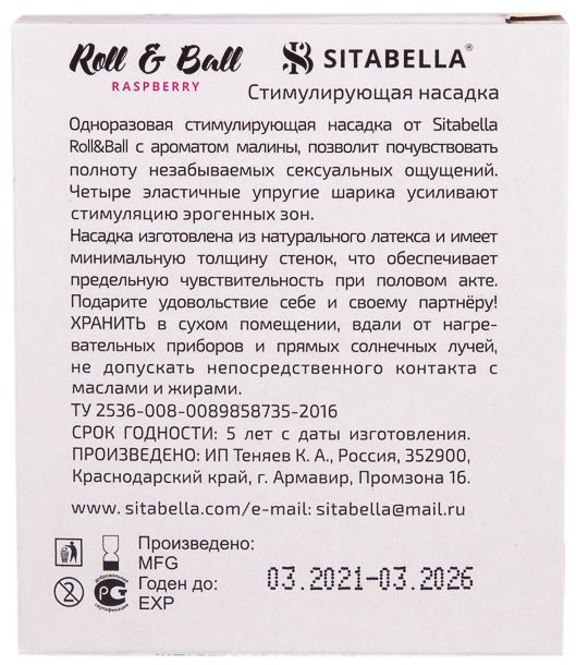 Sitabella Презерватив-насадка стимулирующий Roll & Ball Raspberry