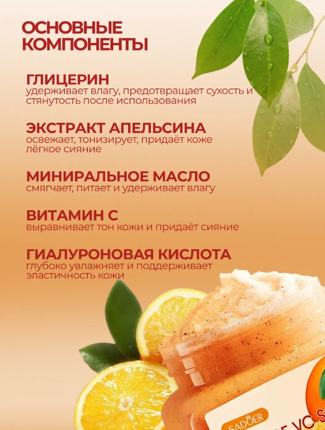 SADOER Скраб для тела с апельсином и витамином C «Fresh Orange Vc Exfoliating And Cleansing Scrub»