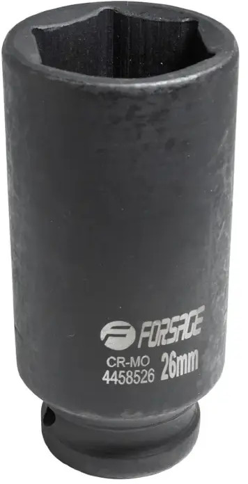 Головка ударная 26 мм (6 граней),1/2″ — это незаменимый инструмент для профессиональных механиков и автолюбителей. Головка изготовлена из высококачественной хромомолибденовой стали, что придает ей прочность и стойкость к интенсивному использованию. Головка имеет 6-гранный профиль, который обеспечивает прочное сцепление с болтами и гайками. Головка имеет удлиненную форму, что позволяет работать с крепежом, расположенным в углублениях или на длинных шпильках. Головка снабжена 1/2" квадратным приводом, что обеспечивает ее совместимость с различными ручными и пневматическими инструментами.