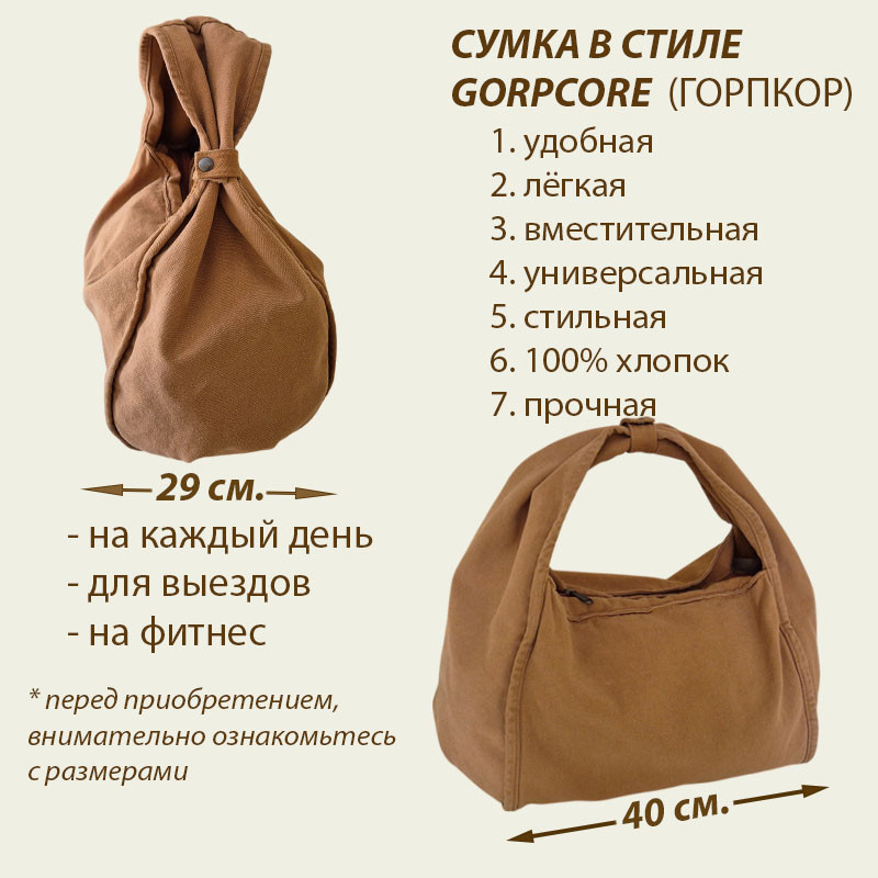 Текстильная сумка из натуральных хлопково-холщовых волокон цвета охры или, по-другому, цвета обожжённого кирпича, станет прекрасным дополнением к вашему гардеробу, особенно в весенне-летний период. Она буквально создана для тех, кто любит свободу передвижения. Очень вместительная, но при этом легкая — такая сумка не только удобна для повседневной носки, но её можно взять с собой в путешествие в качестве ручной клади. Не громоздкая, но вместительная — сумка может подойти вам для фитнеса, бани, бассейна и её можно даже взять с собой на пляж. Такой аксессуар непременно привлечет внимание окружающих, подчеркивая ваш безупречный вкус. Особенно, если Вы предпочитаете стиль «горпкор» или стиль «хобо». Сумка аккуратно сшита и имеет качественную фурнитуру. К сумке предусмотрено отстегивающее текстильное кольцо, которое вы можете пристегнуть к ручке сумки в качестве декоративного элемента.