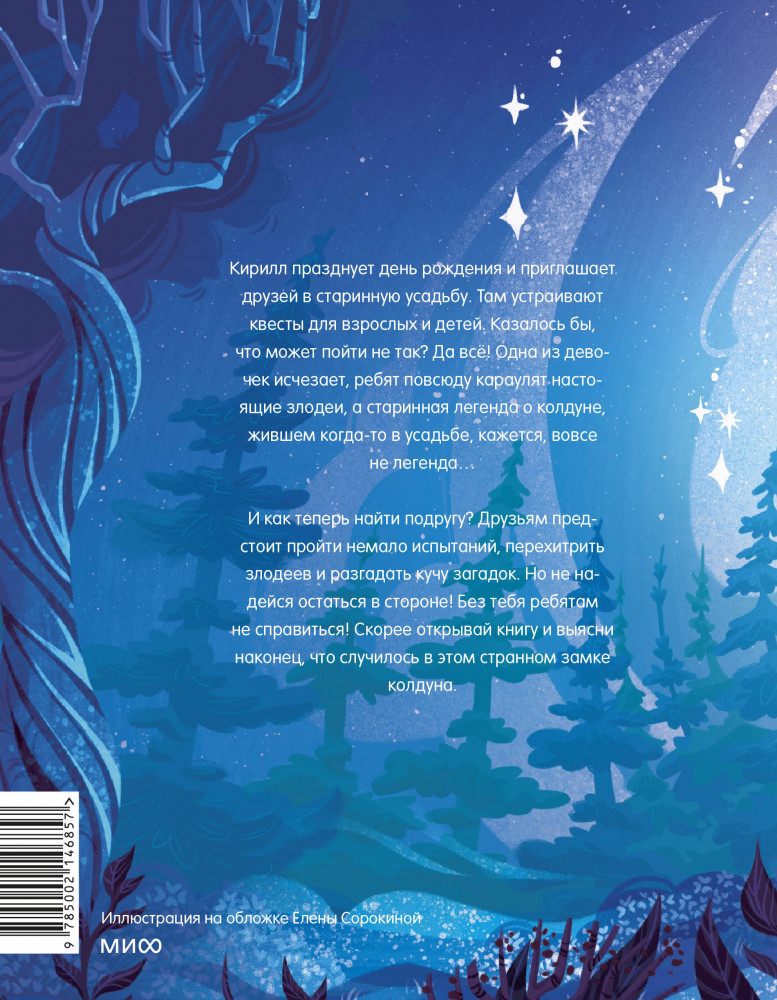 Серия: Книга-квест Книга-квест, которая отвлечет ребенка от телефона. Кирилл празднует день рождения и приглашает друзей в старинную усадьбу. Там устраивают квесты для взрослых и детей. Казалось бы, что может пойти не так? Да всё. Одна из девочек исчезает, ребят повсюду караулят настоящие злодеи, а старинная легенда о колдуне, жившем когда-то в усадьбе, кажется, вовсе не легенда… |