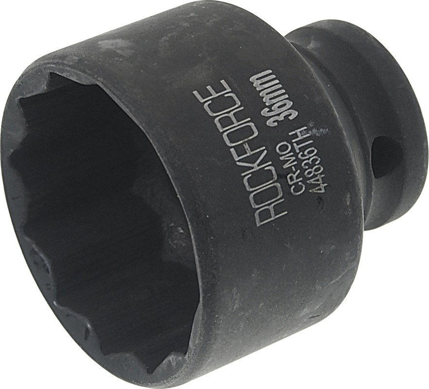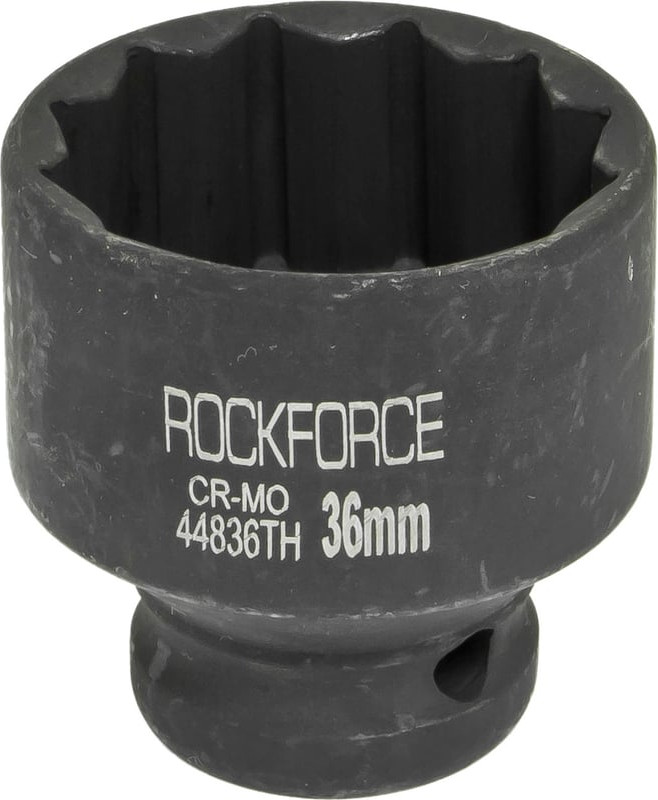 Головка ударная тонкостенная 36 мм (12 граней) от бренда Rockforce предназначена для использования с ручным и пневматическим ударным гайковертом.