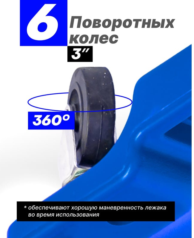 • 6 поворотных колёс — для лёгкого перемещения под автомобилем без усилий;