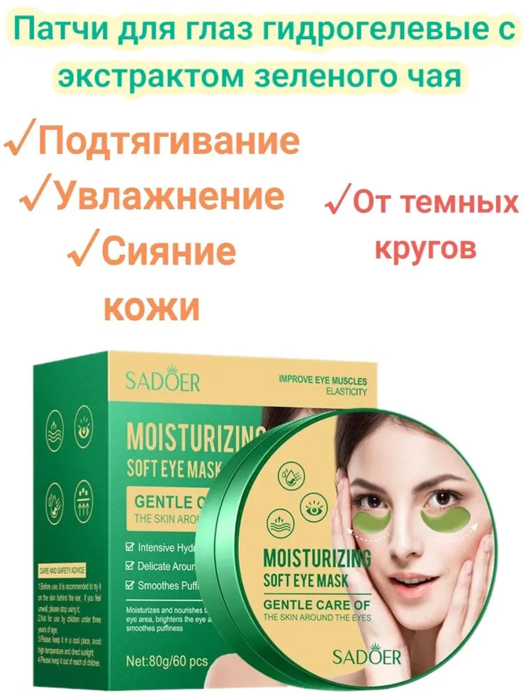 SADOER Гидрогелевые патчи для глаз с экстрактом зеленого чая