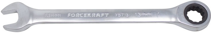 Ключ комбинированный трещоточный 13 мм — это удобный инструмент для работы с крепежными элементами, который сочетает в себе свойства рожкового и накидного ключей. Для работы в труднодоступных местах подойдет рожковый ключ. Накидной обладает большей эффективностью при отворачивании тугого крепежа. Трещоточный механизм в накидной части ключа, позволяет комфортно работать в местах с ограниченным пространством. Ключ изготовлен из высококачественной стали Cr-V.