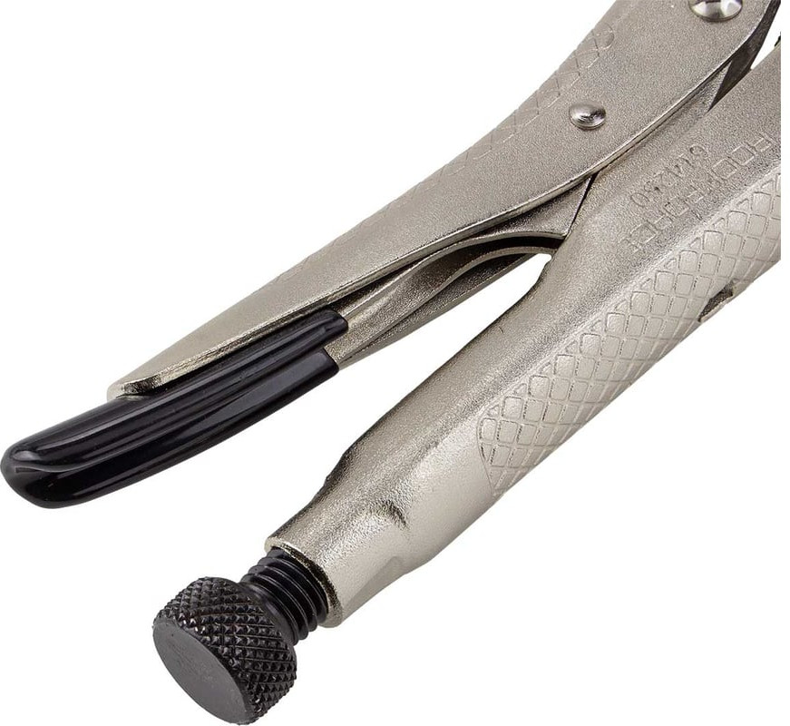 Зажим гейферный с прямым захватом 10″ 250 мм предназначен для удержания и фиксации детали перед выполнением сварочных и слесарных работ или перед обработкой и зачисткой, а также будет полезен дома, в гараже или на даче. Зажим с губками с насечками и винтом, который расположен на рукоятке и обеспечивает надежную фиксацию и позволяет плавно изменять величину рабочего хода губок. Пружина внутри обеспечивает высокое усилие сжатия. При необходимости его можно отрегулировать при помощи специального винта. Материал инструмента инструментальная сталь. Используемые материалы обеспечивают долгий срок службы зажима. Он устойчив к коррозии и износу, что позволяет использовать зажим гейферный в течение длительного времени без потери качества работы. Инструмент идеально подходит для сварочных работ, ремонта автомобилей, а также для проведения слесарных работ во время технического обслуживания.