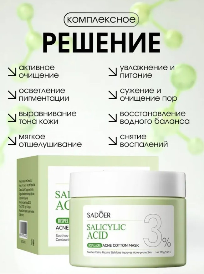 SADOER Маска-пэды для лица от акне с салициловой кислотой «Salicylic Acid Anti-acne Cotton Mask»