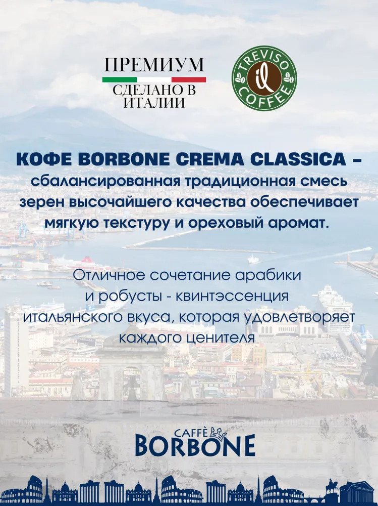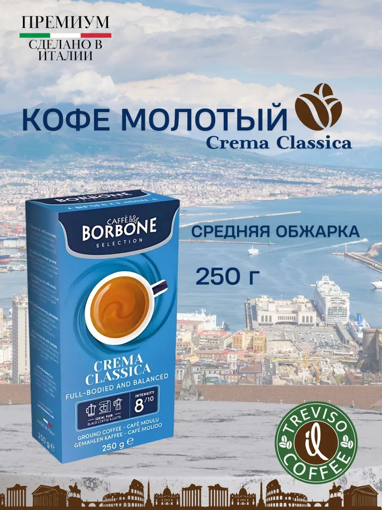 Чашечка молотого кофе Borbone Crema Classica Ground – начало вашего идеального утра в итальянском стиле. Сбалансированный купаж порадует насыщенным вкусом с ярко выраженным шоколадно-ореховым букетом. Средняя степень обжарки подчеркивает ароматные особенности неаполитанского эспрессо, придает ему особую текстуру, смягчает горечь робусты и кислинку арабики. Изысканный вкус темного шоколада и фундука. Неаполитанская компания Caffe Borbone использует многолетние традиции Южной Италии при приготовлении своих купажей. Особые способы обработки, обжарки и тщательный отбор зерен придают напитку неповторимый вкус и уникальный аромат, способные покорять сердца. При создании популярного купажа Borbone Crema Classica соблюдался строгий баланс содержания арабики и робусты. Зерна собирались с крупных плантаций Южной Америки и Индии.