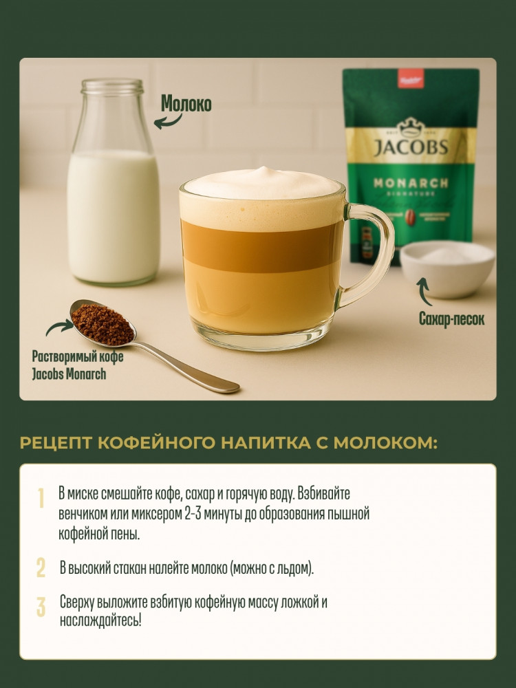 Окунитесь в магию вкуса с Jacobs Monarch — там, где классика встречается с вдохновением. Благородная глубина, насыщенный аромат и шелковистая текстура каждой чашки пробуждают чувства и дарят тепло. Пусть Jacobs станет вашим утренним ритуалом или вечерним моментом уюта — разделите аромагию с теми, кого любите.