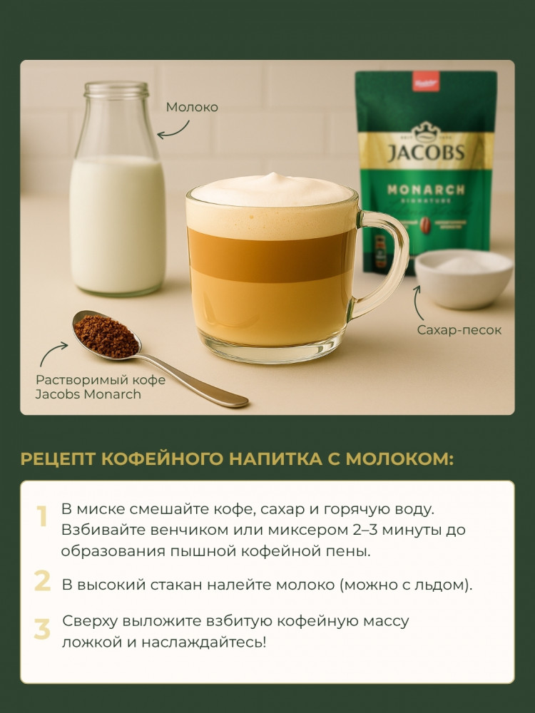 Окунитесь в магию вкуса с Jacobs Monarch — там, где классика встречается с вдохновением. Благородная глубина, насыщенный аромат и шелковистая текстура каждой чашки пробуждают чувства и дарят тепло. Пусть Jacobs станет вашим утренним ритуалом или вечерним моментом уюта — разделите Аромагию с теми, кого любите.