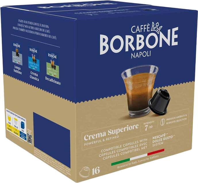 Капсульный кофе Caffe Borbone Crema Superiore — это истинное наслаждение для ценителей качественного кофе. Эти капсулы созданы для тех, кто хочет купить Caffe Borbone Crema Superiore и насладиться богатым вкусом и ароматом. Основу смеси составляют тщательно отобранные зерна арабики, обжаренные по традиционному рецепту, что придает напитку изысканный и гармоничный вкус. Капсулы Crema Superiore идеально подходят для приготовления насыщенного эспрессо с мягким, шелковистым вкусом. Этот кофе отличается тонким ароматом с нотками молочного шоколада и ванили, а также естественной легкой сладостью, которая делает его особенно привлекательным для гурманов. Капсулы Crema Superiore обеспечивают идеальную защиту от влаги и кислорода, сохраняя все вкусовые качества и насыщенный аромат. Этот кофе станет отличным выбором для тех, кто хочет заказать кофе Crema Superiore и насладиться качественным напитком в любое время.