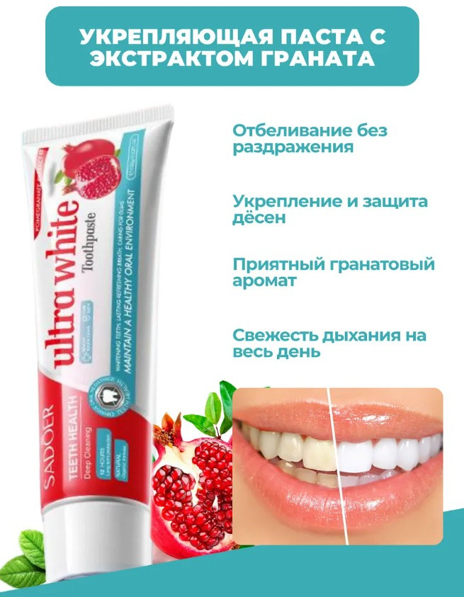 Отзывы «Отбеливающая зубная паста с красным гранатом «Pomegranate Bright White Stain Removing Toothpaste»»
