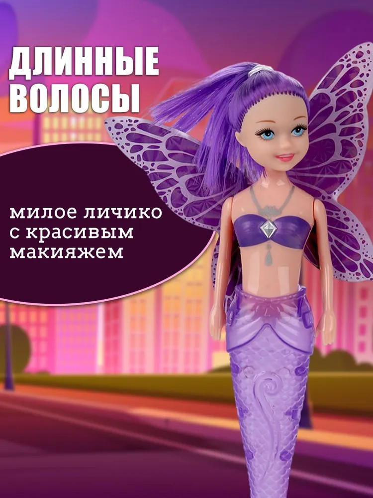 💳 Оплатить за товар можно при получении 🇰🇿 Есть бесплатная доставка по Казахстану от 1 дня 🎁 Копите бонусы с каждой покупки Кукла «Русалка с крыльями» ТМ «Тутти» станет прекрасным подарком для девочки. Милая куколка в образе русалки с крыльями и полупрозрачным хвостом, который светится при активации кнопки на спине, непременно понравится вашей малышке. У русалочки красивые длинные волосы фиолетового цвета, их можно заплетать в разнообразные причёски. Для ухода за волосами в наборе предусмотрена расчёска. |