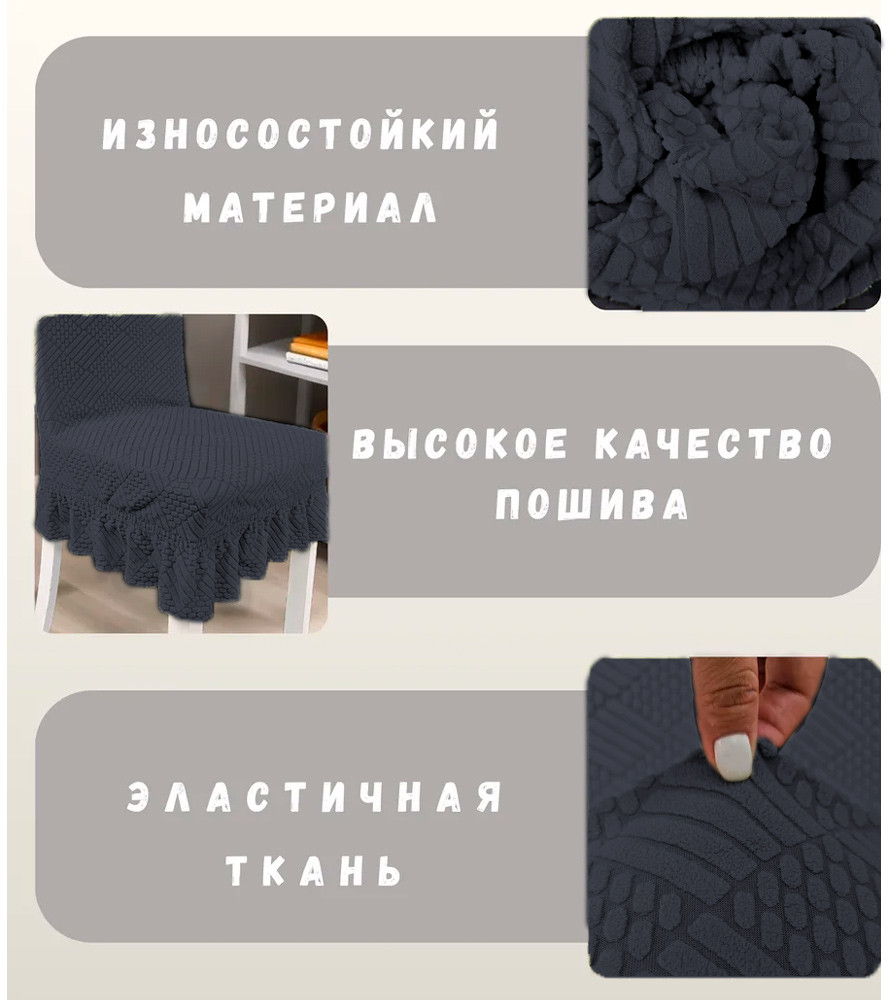 Чехол идеально впишется в любой интерьер и сделает его эффектным, современным и изысканным. Мягкая шелковистая ткань в сочетании с легкой фактурой придает цвету насыщенность, привнося в интерьер ноты роскоши. Готовые чехлы на стулья — идеально решение для тех кто хочет сберечь свою мебель от быстрого износа или же освежить интерьер на некоторое время. Все знают, как быстро обивка на стульях приходит в негодность.