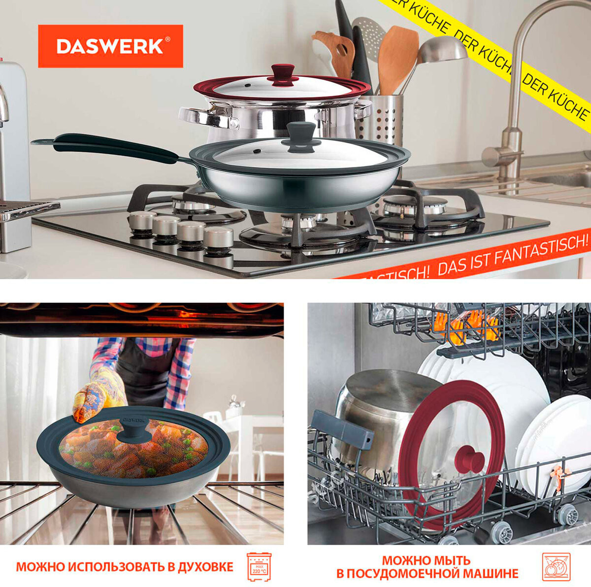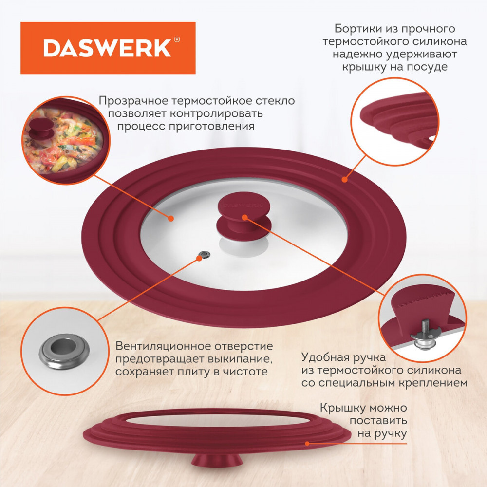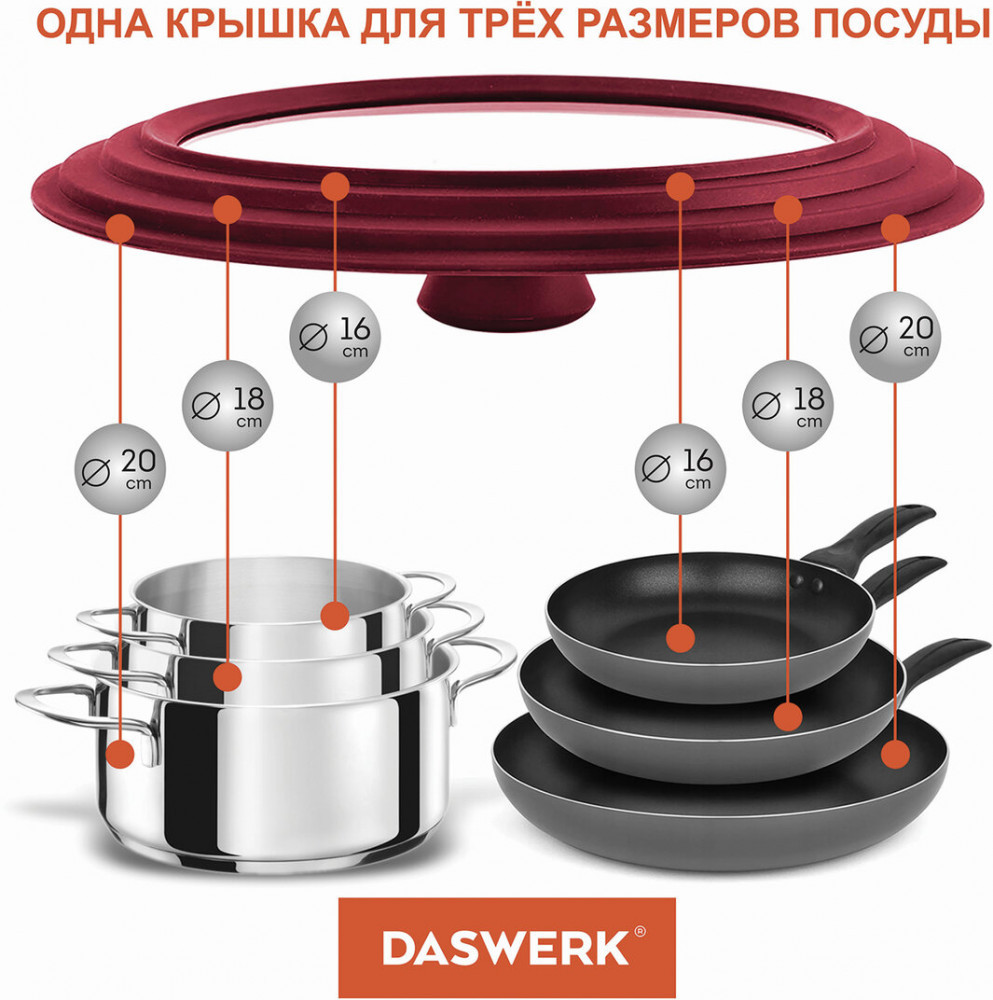 Больше не нужно хранить гору стеклянных крышек разного размера, универсальная крышка Daswerk существенно сэкономит место на кухне. Одна универсальная крышка Daswerk — вместо трёх обычных! Спешите приобрести универсальную крышку Daswerk по выгодной цене!