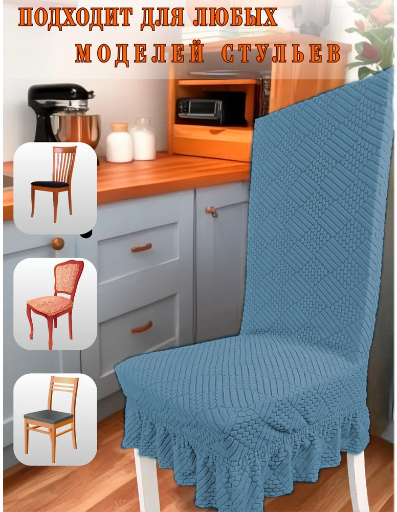 Чехол идеально впишется в любой интерьер и сделает его эффектным, современным и изысканным. Мягкая шелковистая ткань в сочетании с легкой фактурой придает цвету насыщенность, привнося в интерьер ноты роскоши. Готовые чехлы на стулья — идеально решение для тех кто хочет сберечь свою мебель от быстрого износа или же освежить интерьер на некоторое время. Все знают, как быстро обивка на стульях приходит в негодность.