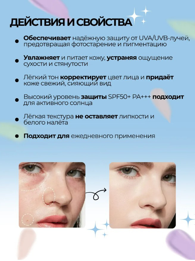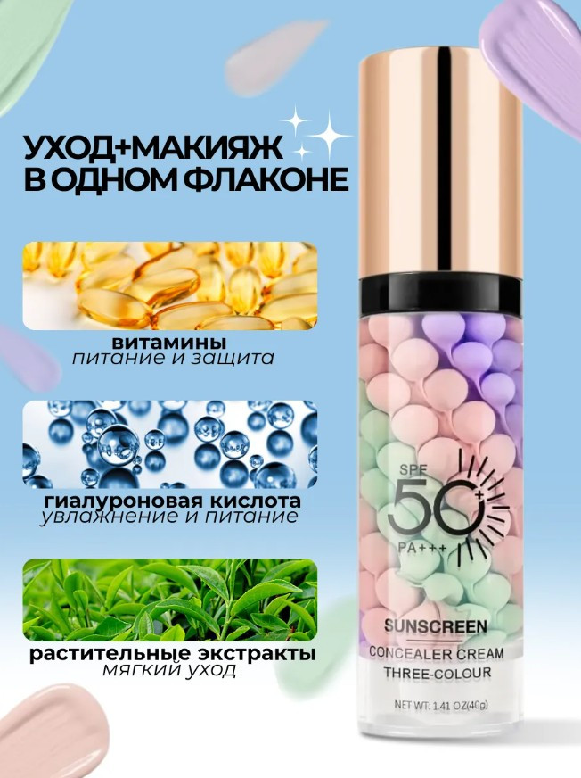 SADOER Солнцезащитная трехцветная выравнивающая основа под макияж SPF50+ PA+++