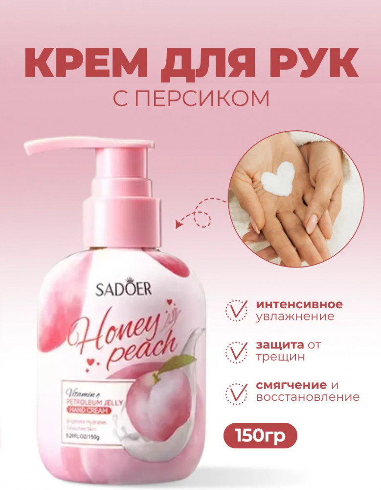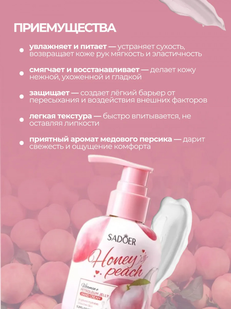SADOER Крем для рук увлажняющий «Honey Peach Vitamin E Petroleum Jelly Hand Cream»
