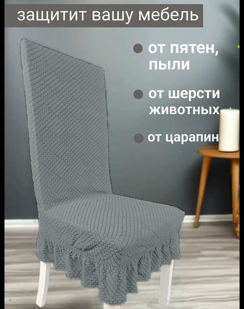Чехол идеально впишется в любой интерьер и сделает его эффектным, современным и изысканным. Мягкая шелковистая ткань в сочетании с легкой фактурой придает цвету насыщенность, привнося в интерьер ноты роскоши. Готовые чехлы на стулья — идеально решение для тех кто хочет сберечь свою мебель от быстрого износа или же освежить интерьер на некоторое время. Все знают, как быстро обивка на стульях приходит в негодность.