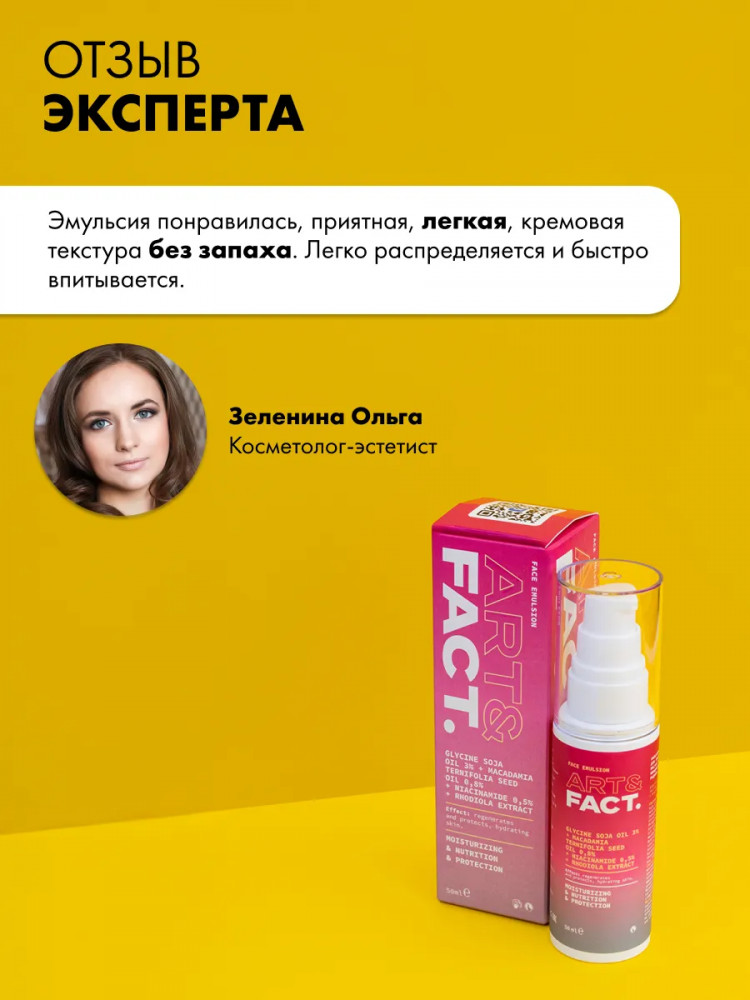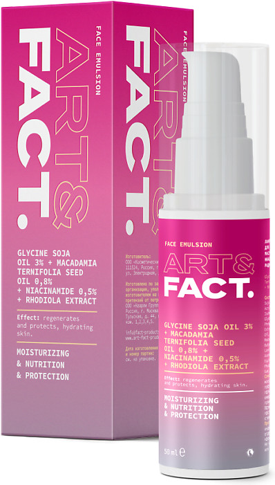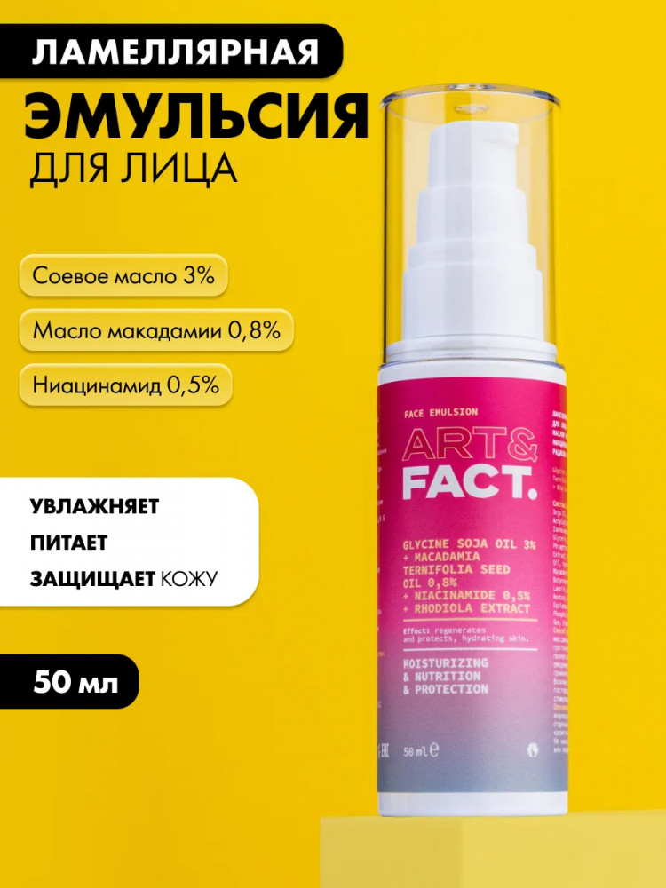 Art&Fact Эмульсия для лица ламеллярная с соевым маслом 3%, маслом макадамии 0.8% «Glycine Soja Oil 3%, Macadamia Ternifolia Seed Oil 0.8%, Niacinamide 0.5%, Rhodiola Extract Lamellar»