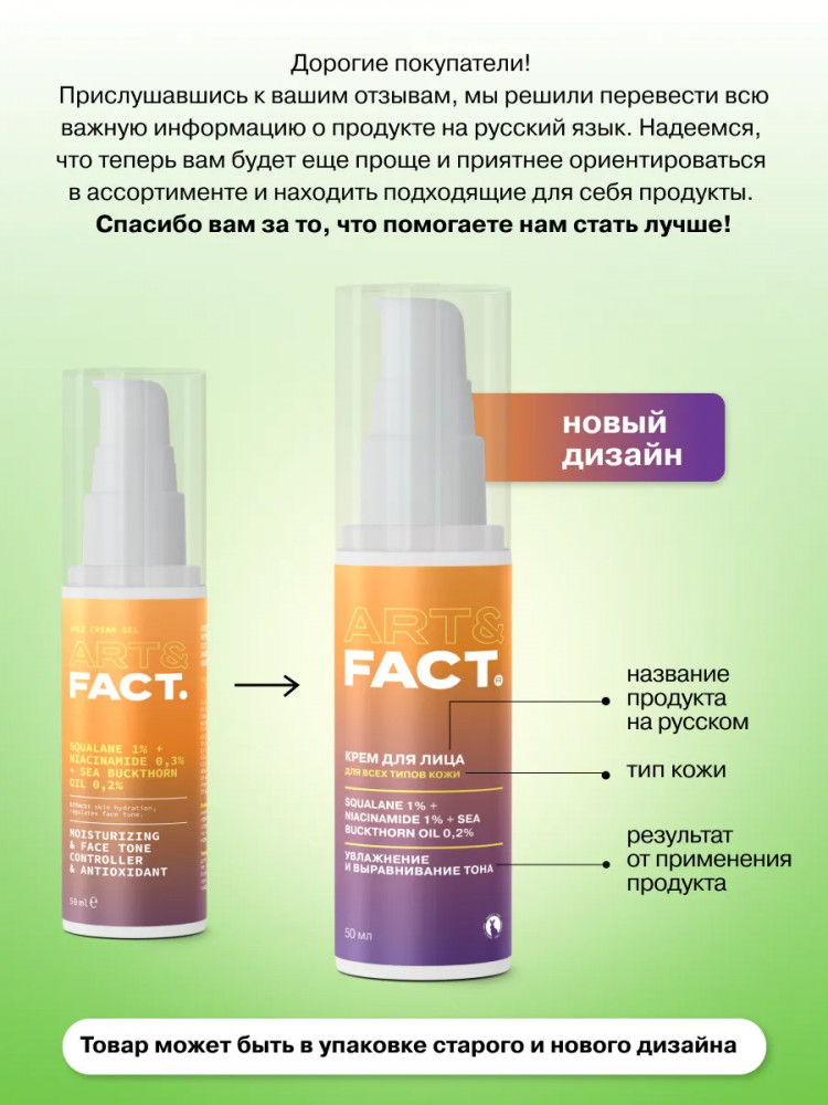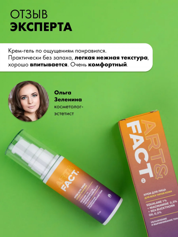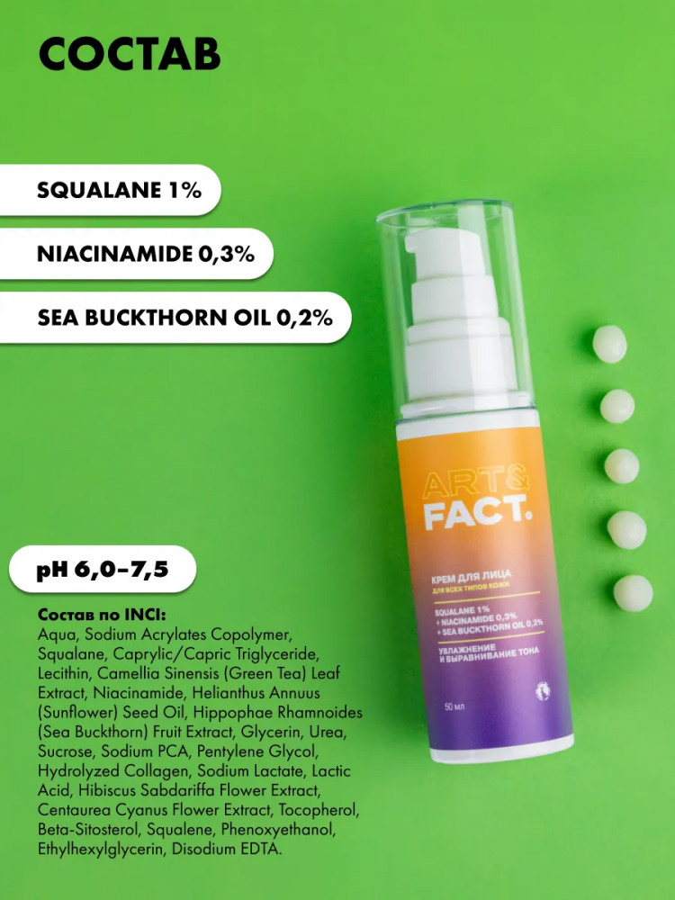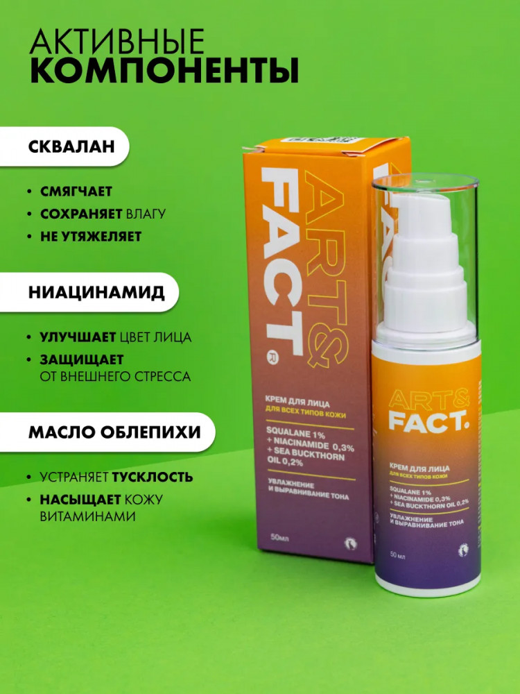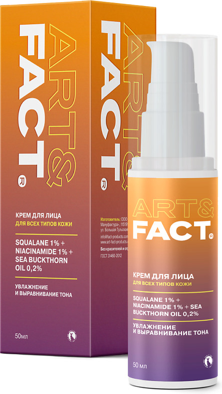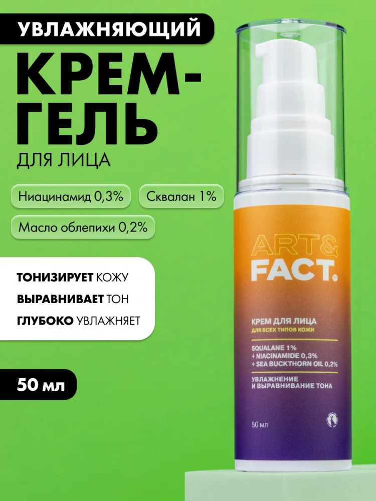Art&Fact Крем-гель для лица легкий увлажняющий со скваланом 1%, ниацинамидом 0.3% и маслом облепихи 0.2% «Squalane 1%, Niacinamide 0.3%, Sea Buckthorn Oil 0.2%»