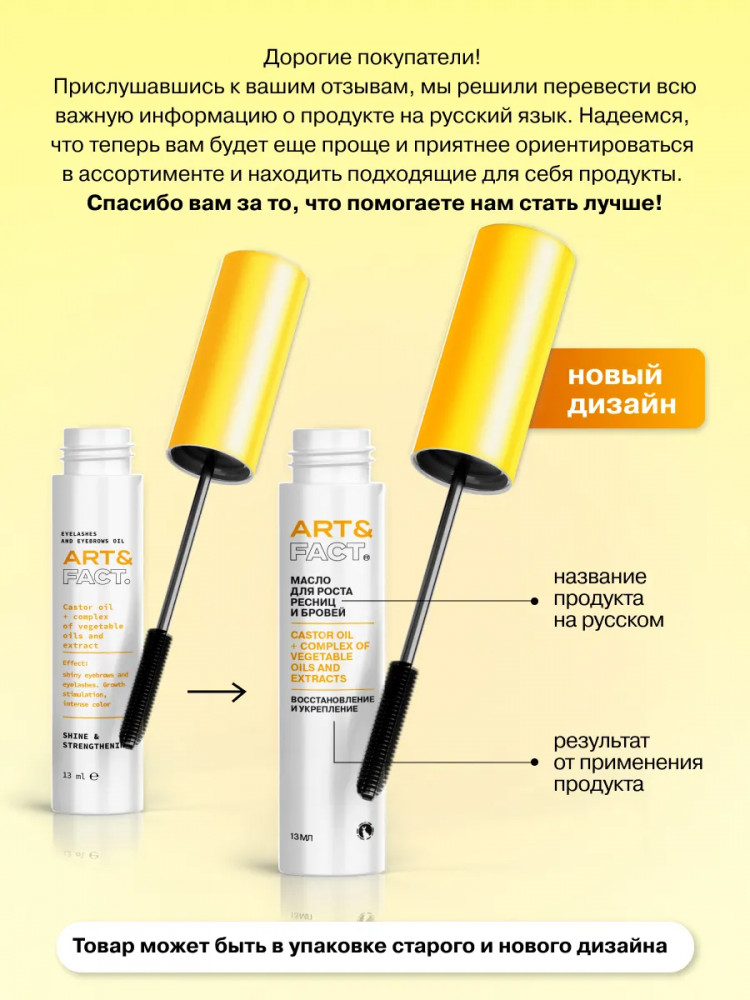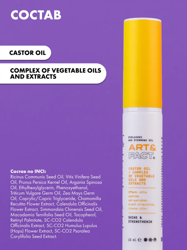 Art&Fact Масло для роста ресниц и бровей «Castor Oil + Complex Of Vegetable Oils And Extracts»-20% +85