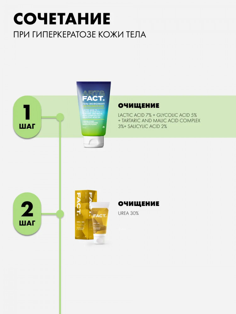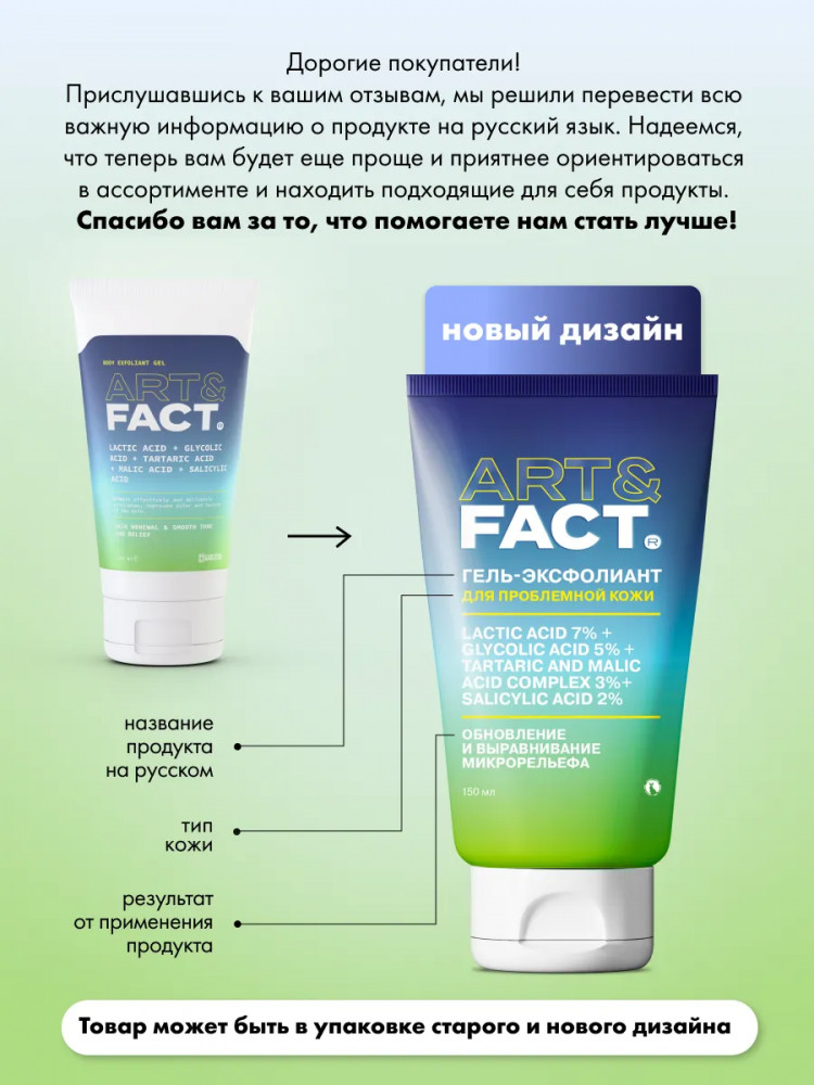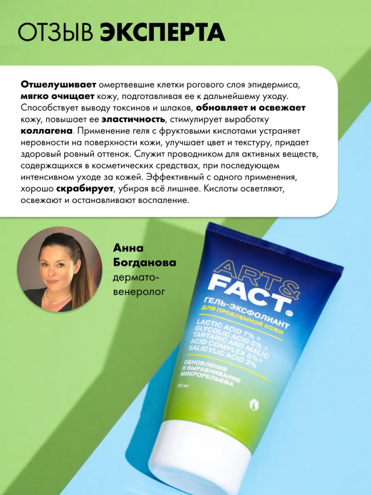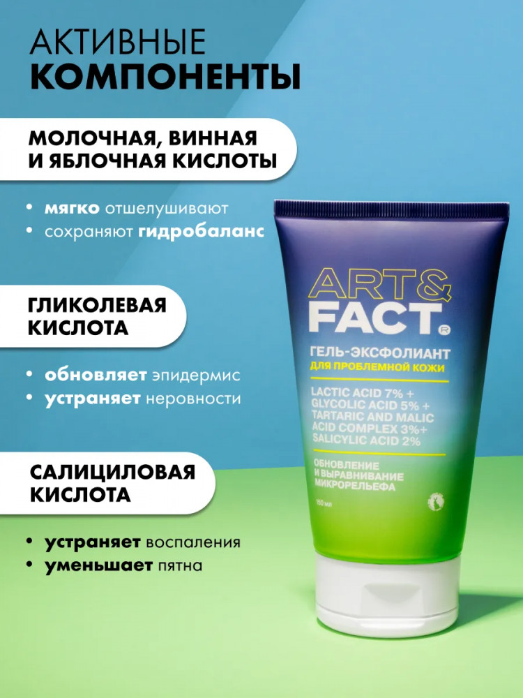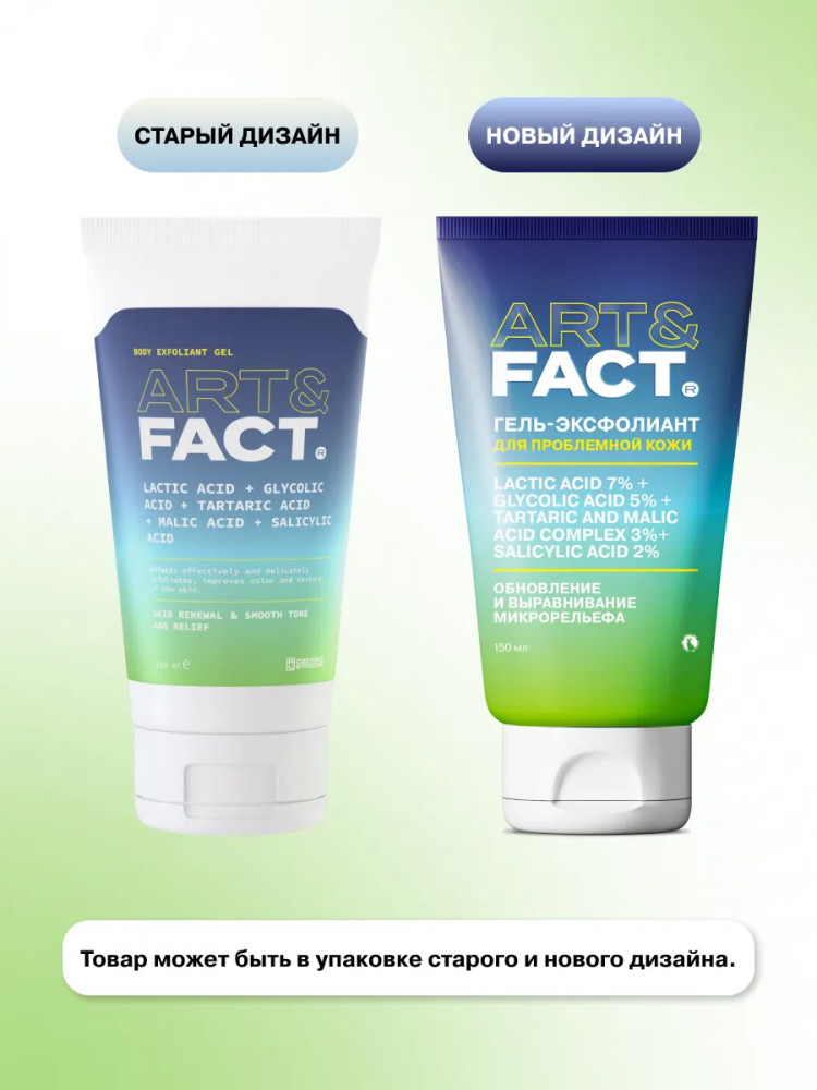 Art&Fact Гель-эксфолиант для проблемной кожи тела кислотный «Lactic Acid 7% + Glycolic Acid 5% + Tartaric And Malic Acid Complex 3% + Salicylic Acid 2%»