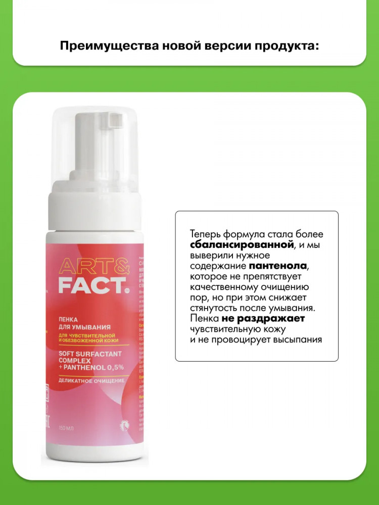 Art&Fact Пенка очищающая для обезвоженной и чувствительной кожи мягкая с пантенолом 0.5% «Soft Surfactant Complex, Panthenol 0.5%»