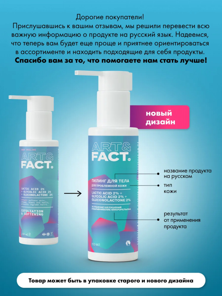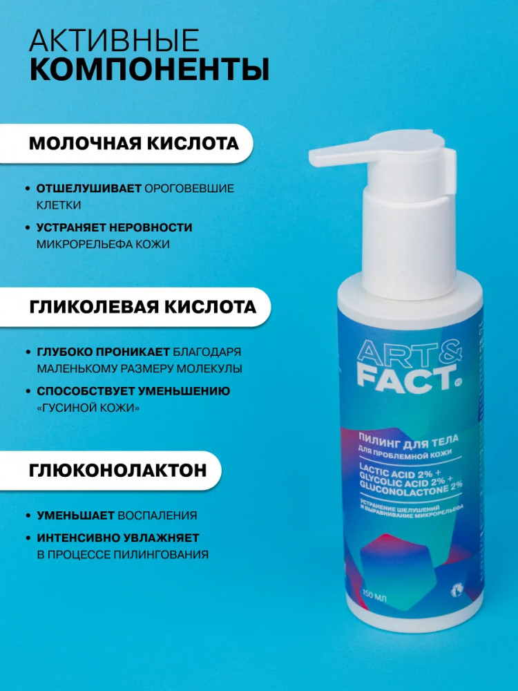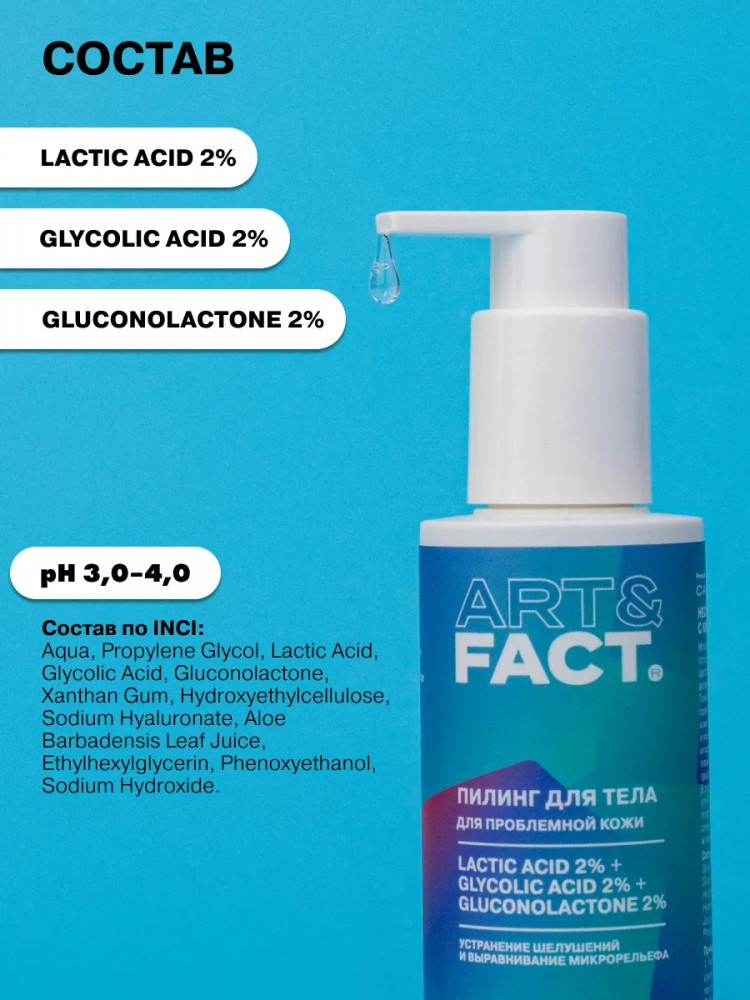 Art&Fact Пилинг для тела несмываемый с кислотами «Lactic Acid 2%, Glycolic Acid 2%, Gluconolactone 2%»