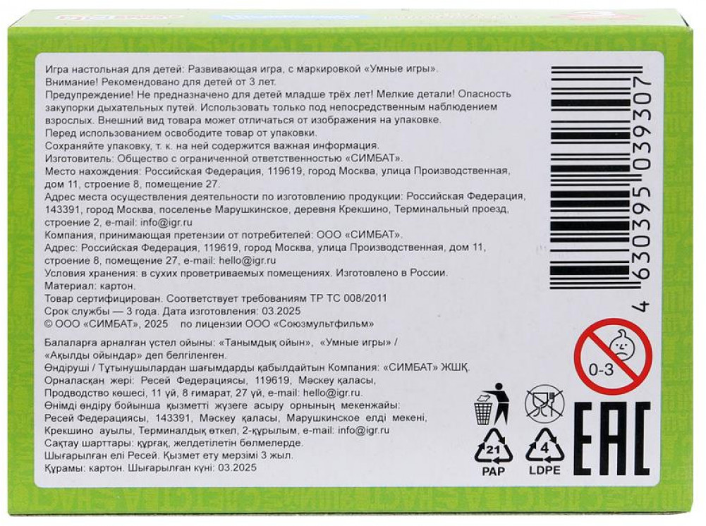 💳 Оплатить за товар можно при получении 🇰🇿 Есть бесплатная доставка по Казахстану от 1 дня 🎁 Копите бонусы с каждой покупки Серия: Союзмультфильм Игра-головоломка «Союзмультфильм. Простоквашино» ТМ «Умные игры» — отличная развивающая игра для самых маленьких: |