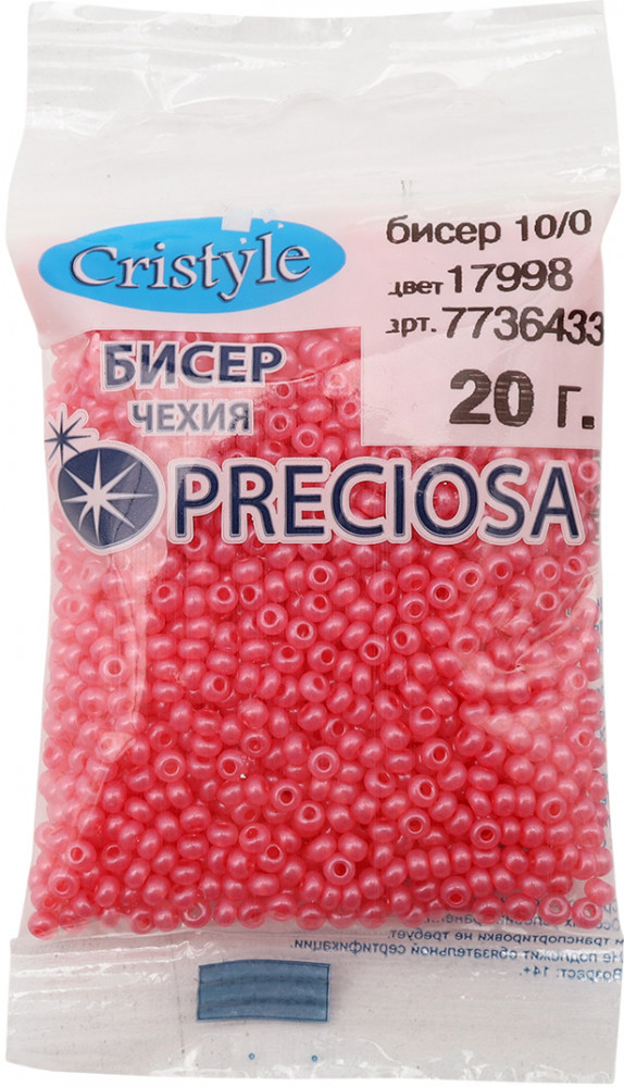 Чешский бисер Preciosa — это качество, которому доверяют мастера всего мира. Каждая партия бисера имеет одинаковый размер и цвет, чтобы ваши узоры и вышивка получились ровными, без изъянов. Технологии производства бисера Preciosa позволяют сохранять цвет и блеск длительное время, чтобы поделки из него радовали вам долгие годы. Вышитые бисером изделия допускается стирать в деликатном режиме или вручную. Используйте мягкие моющие средства, избегайте трения. Температура воды не должна превышать 40 градусов Цельсия. Размер: 10/0 (2,3 мм). Диаметр отверстий 0,7-0,8 мм.
