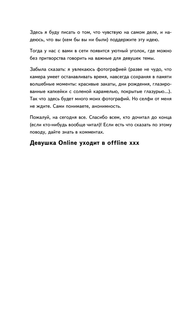 Девушка OnlineВ данный момент этот товар отсутствует в продаже. Возможно, у нас найдется аналогичный или похожий товар здесь. Серия: Блогерша «Я очень надеюсь, что мои ровесницы втайне разделяют мои чувства. |