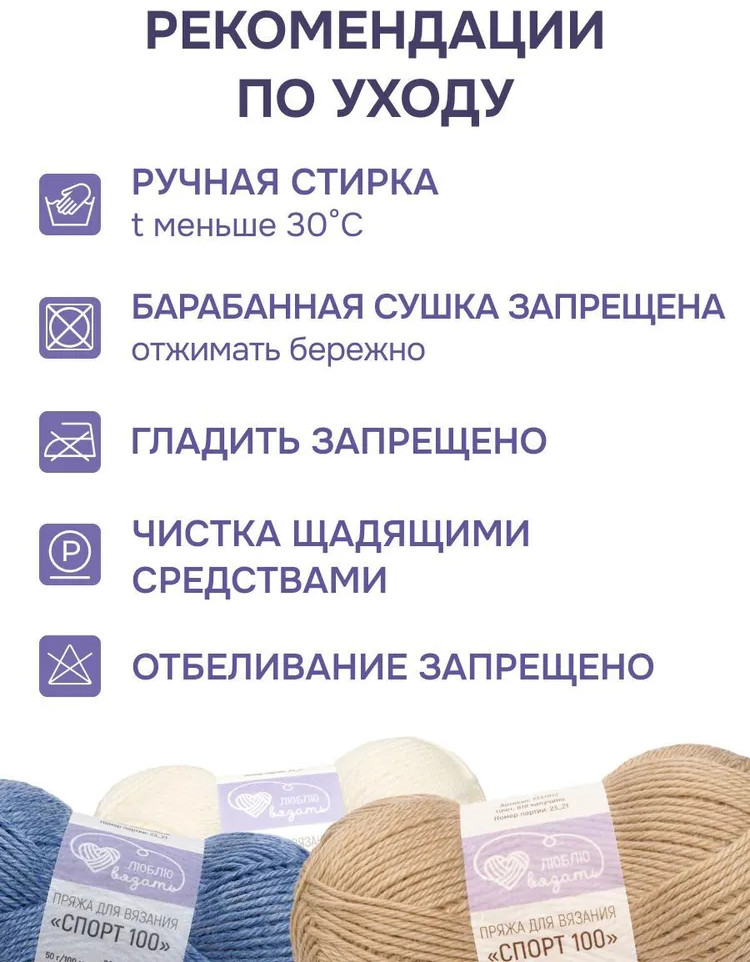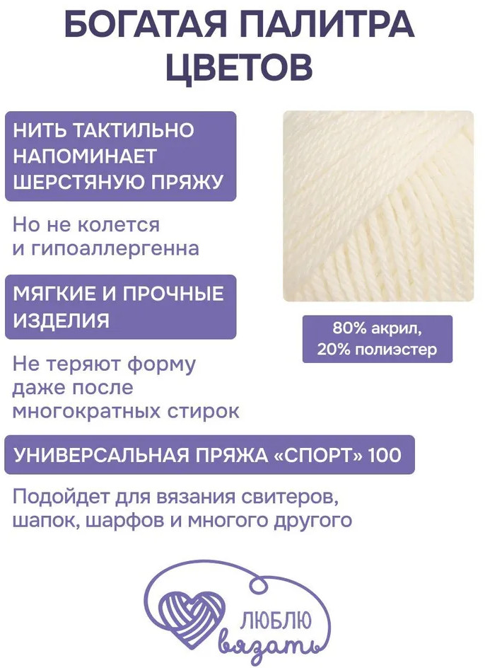 Люблю вязать Пряжа для вязания «Спорт 100», цвет 001 белый