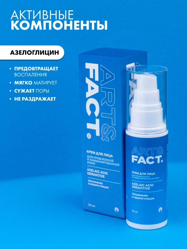 Art&Fact Крем-флюид для проблемной кожи лица с азелоглицином увлажняющий