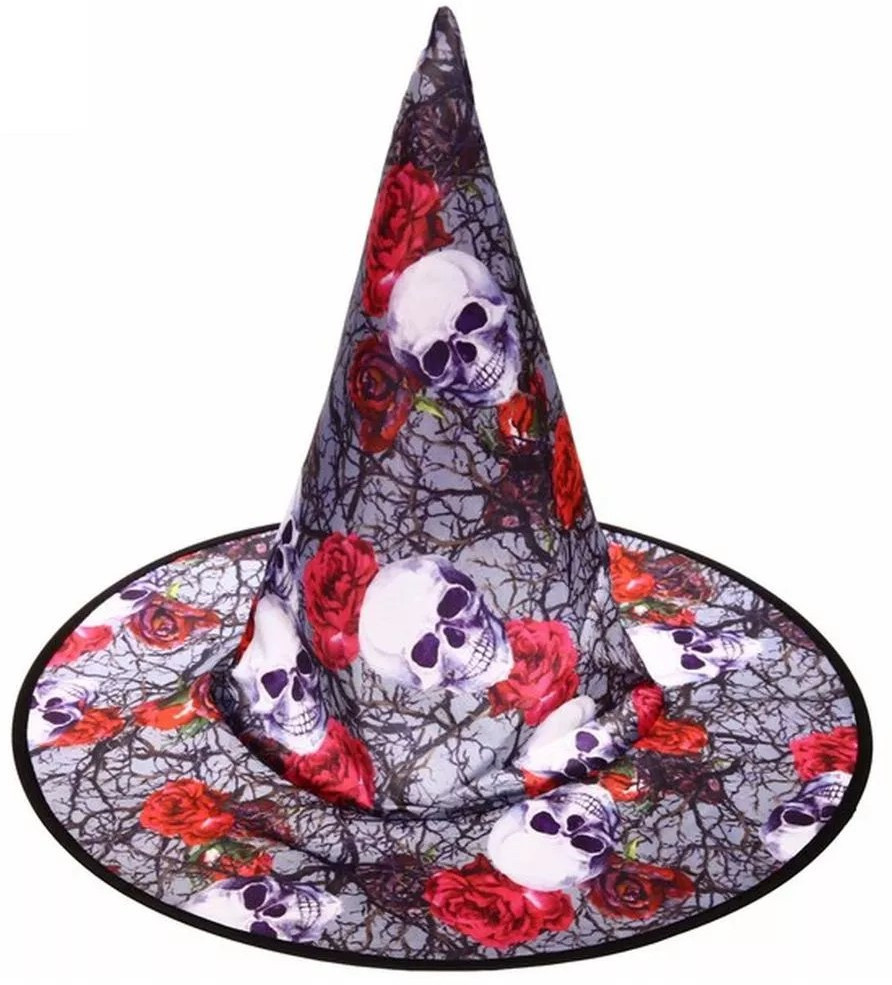 Создайте по-настоящему мрачный и эффектный образ с этой стильной шляпой ведьмы! Черная основа с контрастным узором из белых черепов и алых роз идеально подойдет для Хэллоуина, тематических вечеринок, косплея и фотосессий. |