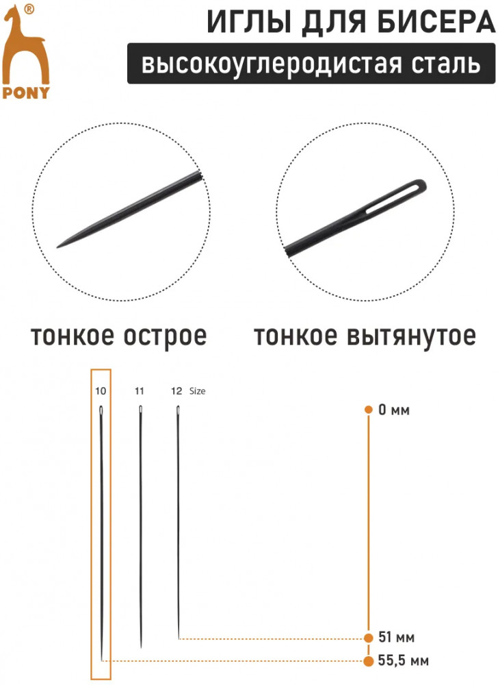 Pony Набор игл для бисера ручных «Beading Black»-20% +15