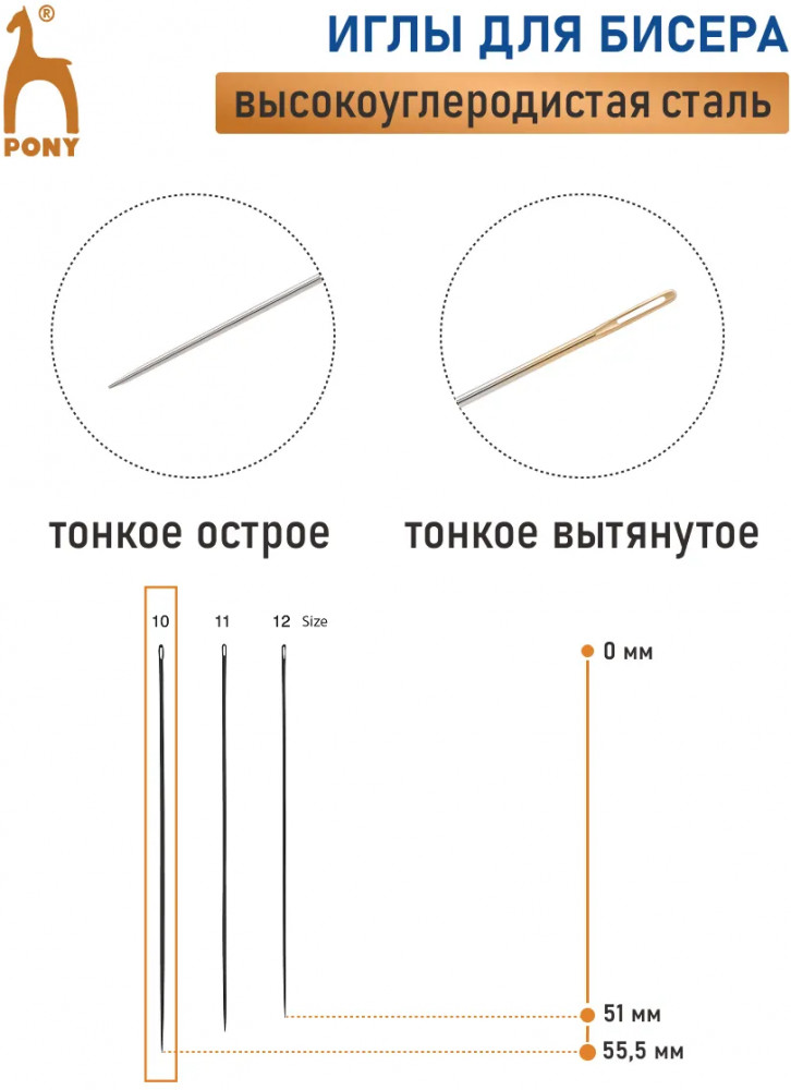 Pony Набор игл для бисера ручных с золотым ушком «Beading»-20%