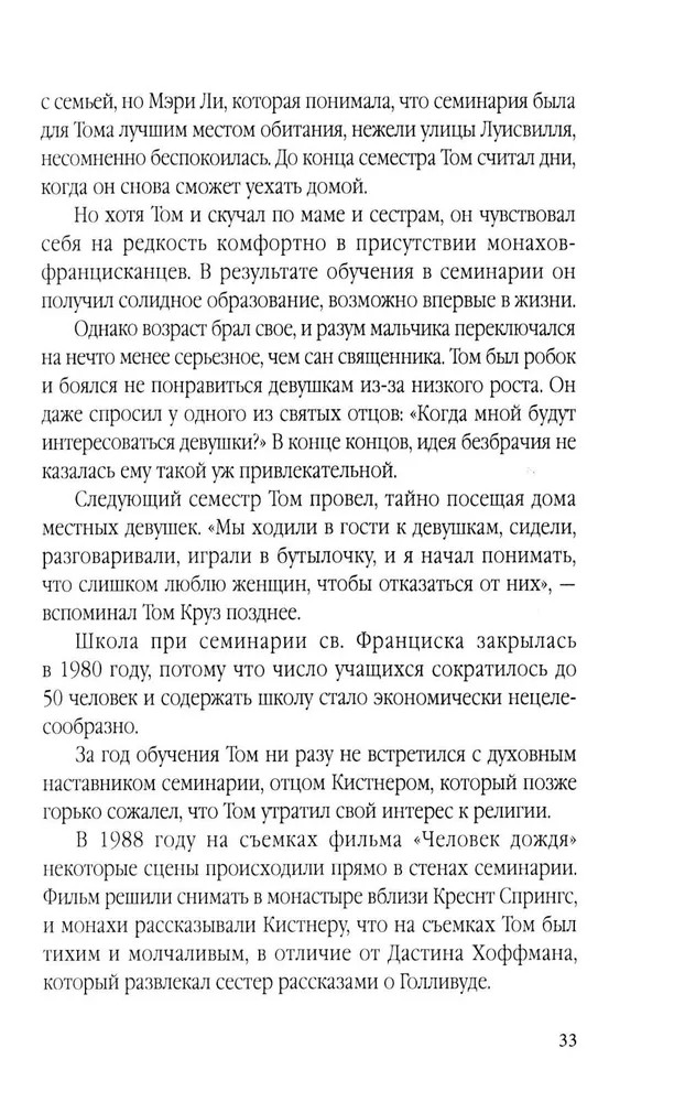 💳 Оплатить за товар можно при получении 🇰🇿 Есть бесплатная доставка по Казахстану 🎁 Копите бонусы с каждой покупки Это первая наиболее полная биография самой яркой звезды Голливуда. «Том Круз» — книга, являющаяся мировым бестселлером, содержит новые откровения об этом очень сложном и загадочном человеке. Вы узнаете о его серьезном увлечении сайентологией, о скрытых политических устремлениях и поразительных амбициях. Вы сможете проследить путь актера от бедности к возвышению до положения суперзвезды. Приоткроются и тайны личной жизни: почему Том Круз расстался с первой женой Мими Роджерс, почему вместе с Николь Кидман решил усыновить двух детей. Автор бестселлера посвятил два года жизни путешествию по миру, чтобы познакомиться с людьми, хорошо знающими Круза, и узнать от них правду об этом незаурядном человеке. |