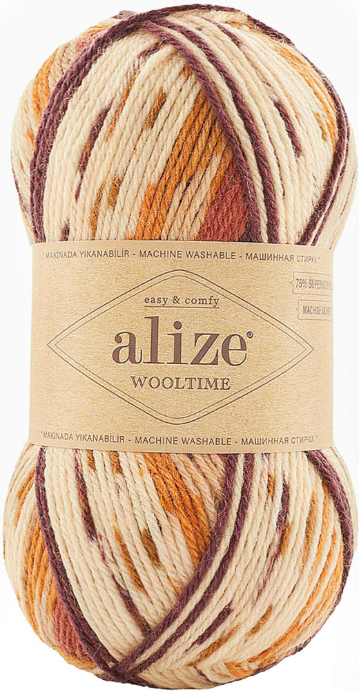 Пряжа Wooltime от Alize представляет собой отличный вариант для создания носков, чулок, гетр, а также варежек и перчаток. Пряжа на 75% состоит из шерсти, которая придает ей гладкость, упругость и легкий блеск. Шерсть приятно ощущается на коже, устойчива к износу и не образует катышков. Добавление полиамида значительно увеличивает прочность изделий из этой пряжи. Alize Wooltime обладает высокой теплотой благодаря большому содержанию шерсти, благодаря чему изделия из нее эффективно удерживают тепло. Мягкая текстура пряжи делает ее приятной на ощупь. С учетом всех своих свойств, нитка идеально подходит как для взрослых, так и для детей. Если вы уже имели удовольствие вязать из Superwash Alize, то можете обратить внимание, что эта пряжа просто в два раза толще.
