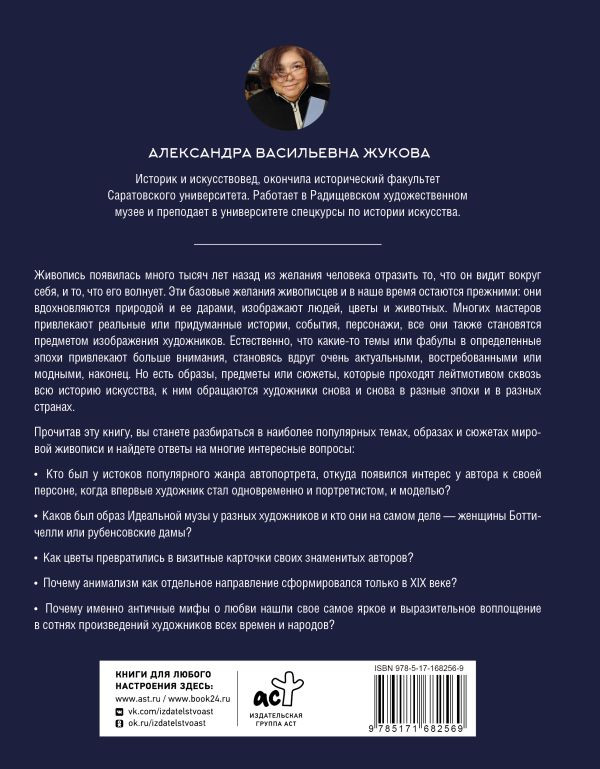 Серия: Понять искусство Живопись появилась много тысяч лет назад из желания человека отразить в рисунках и красках то, что он видит вокруг себя, то, что волнует его душу и сознание. В принципе, вплоть до наших времен эти базовые желания живописцев остаются прежними, они вдохновляются прекрасной природой, ее замечательными дарами, изображают людей, цветы и животных. Многих мастеров привлекают реальные или придуманные истории, события, персонажи, все они также становятся предметом изображения художников. Естественно, что какие-то темы или фабулы в определённые эпохи привлекают больше внимания, становясь вдруг очень актуальными, востребованными или модными, наконец. Но есть образы, предметы или сюжеты, которые проходят лейтмотивом сквозь всю историю искусства, к ним обращаются художники снова и снова в разные эпохи и в разных странах. Прочитав эту книгу, вы станете разбираться в наиболее популярных темах, образах и сюжетах мировой живописи. |