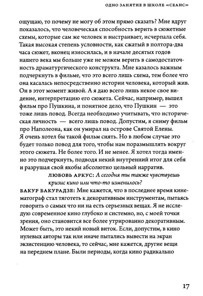 В данный момент этот товар отсутствует в продаже. Возможно, у нас найдется аналогичный или похожий товар здесь. Сборник продолжает серию книг школы «Сеанс», в основе которых — мастер-классы для наших студентов. Новая книга — запись встречи с Бакуром Бакурадзе, мастером сценарного курса.