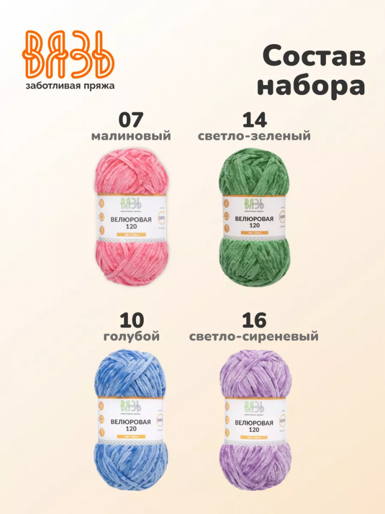 Набор пряжи для вязания «Велюровая 120», цвет Ассорти №3 | Вязь