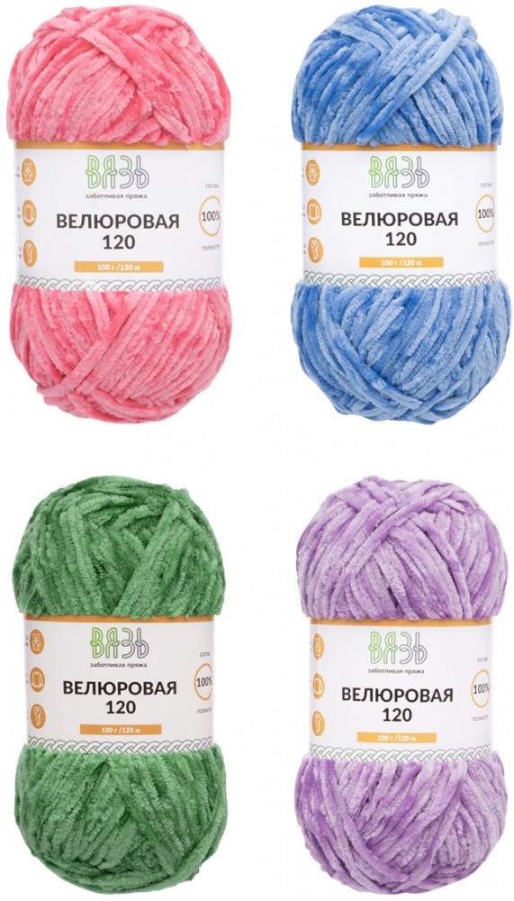 У Велюровой 120 от бренда Вязь уже есть предшественница — более тонкая, но идентичная по составу, цветовой гамме и технологии производства. Вместе эти 2 вида пряжи открывают новые возможности для мастеров, которые вяжут мягкие игрушки.